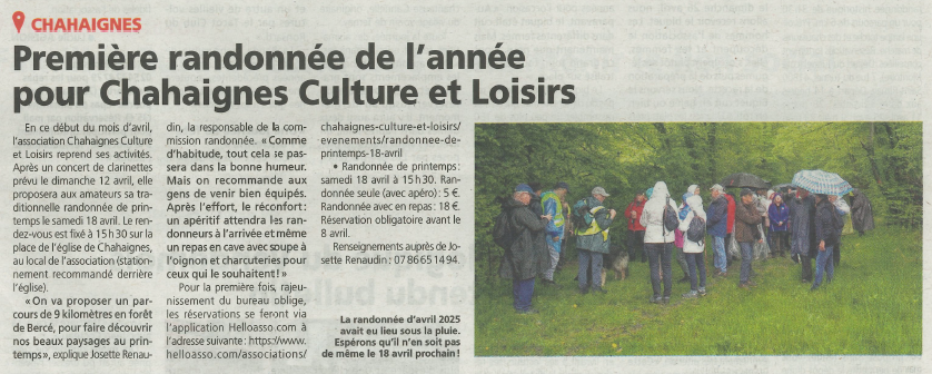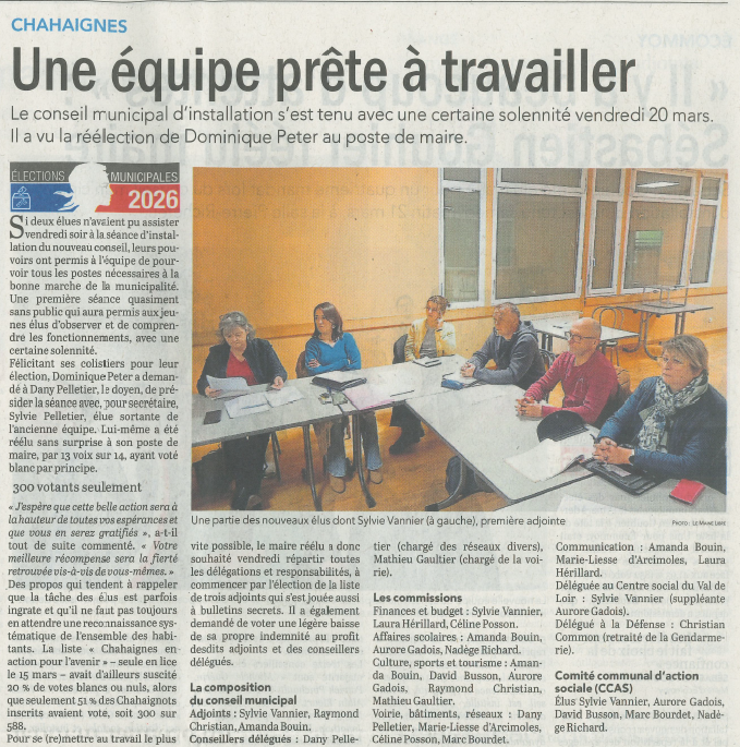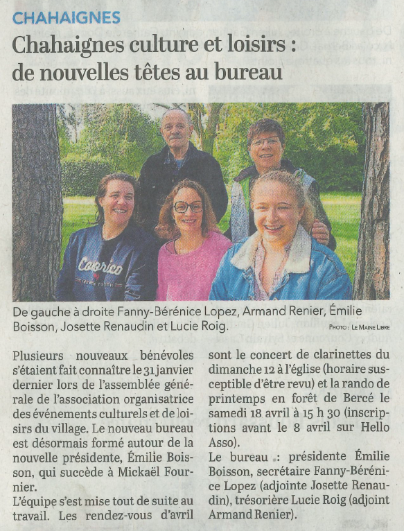 Chahaignes a créé en 2020 son journal d’informations municipales “Chahaignes Actu”. Celui-ci paraît tous les ans en début d’année. C’est une manière de faire un bilan sur les actions menées de l’année écoulée et de communiquer sur les prochains projets. Il est directement déposé à votre domicile.